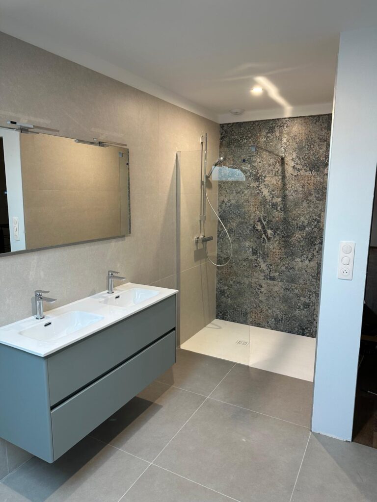 Pour simplifier vos travaux et bénéficier d’un seul interlocuteur, notre entreprise propose la création d’une salle de bain clé en main. Pour cela, nous effectuons tous les travaux de raccordement et l’installation des équipements sanitaires. Nous créons l’éclairage, l’alimentation électrique et la pose du carrelage. Enfin, notre équipe se charge de la mise en place du mobilier de salle de bains.